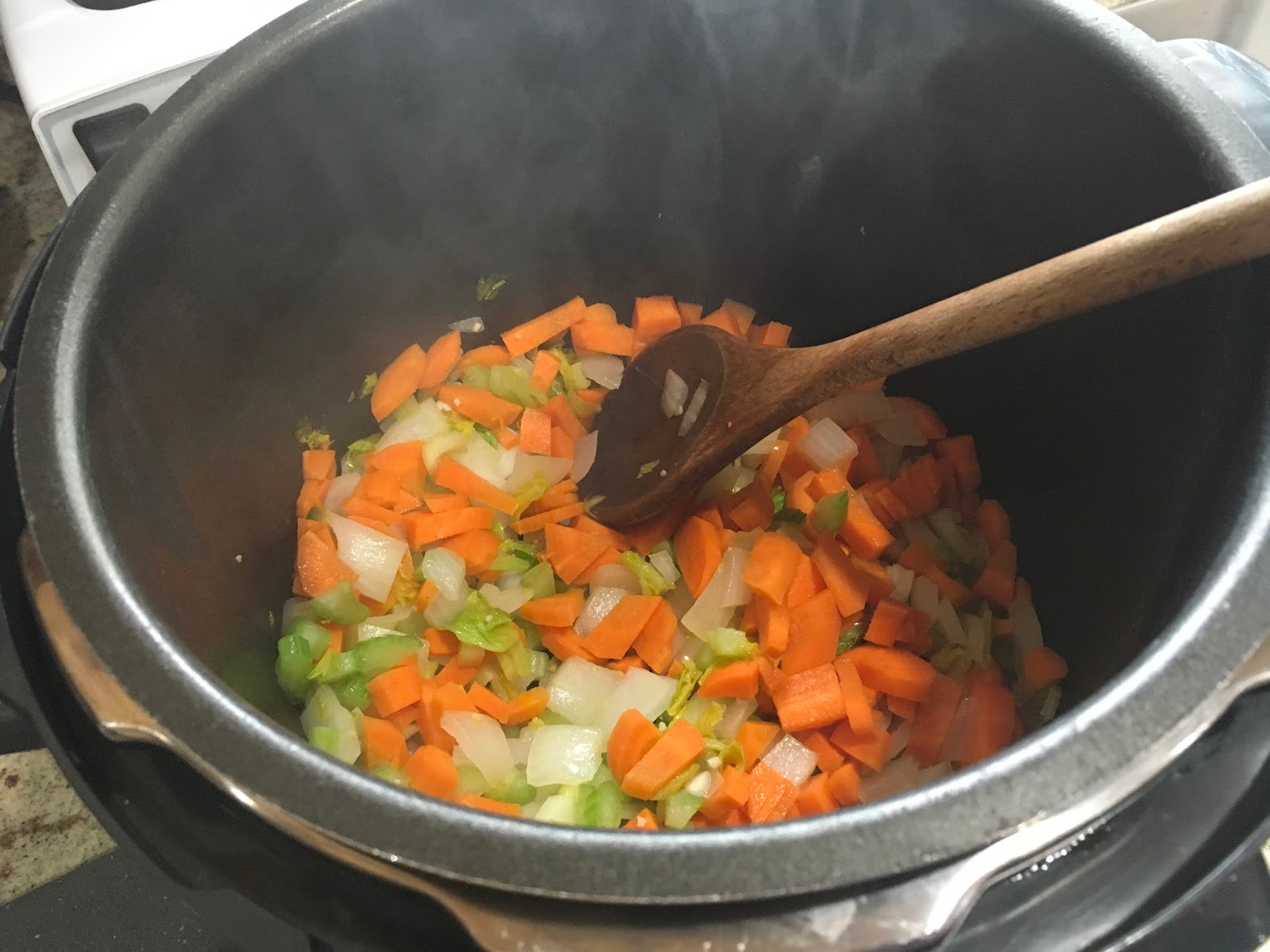 soup turkey cooker pressure wild rice sauteing vegetables